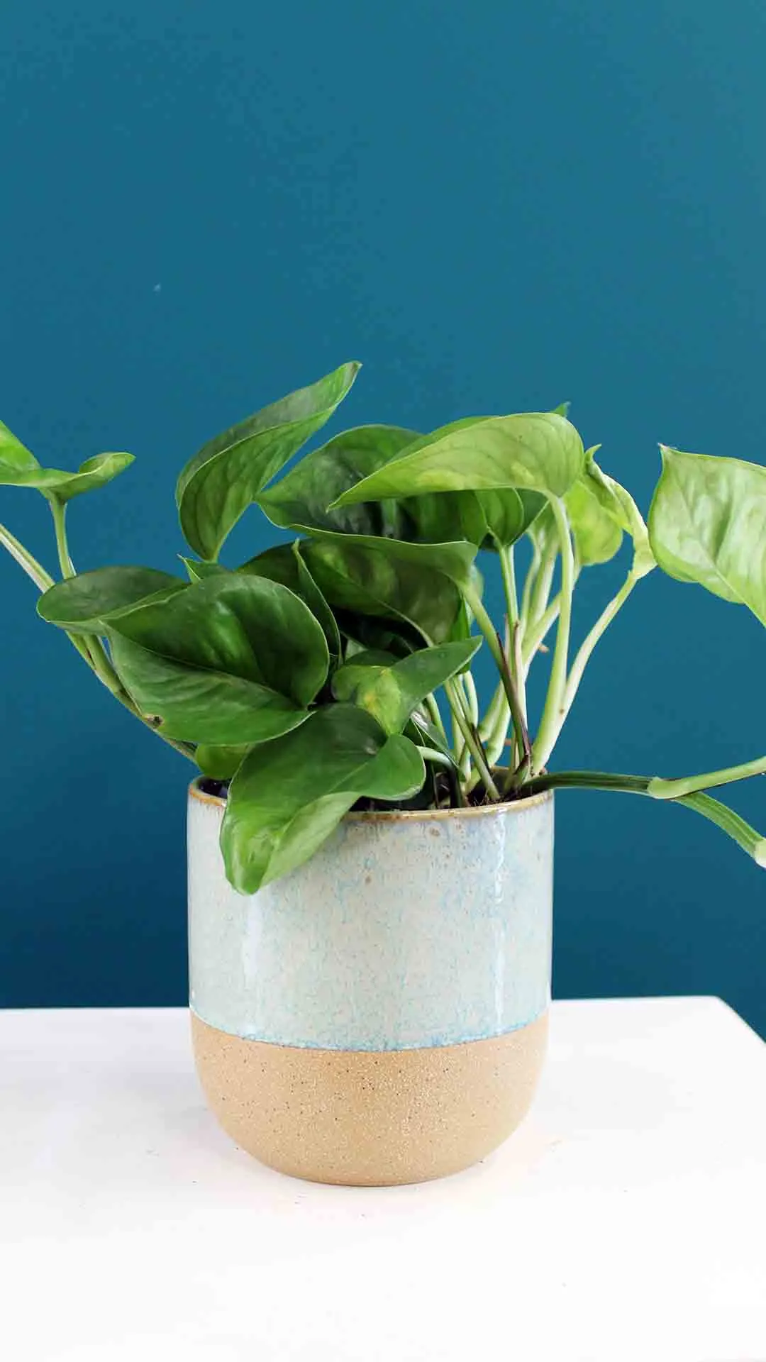 Epipremnum aureum placed in a ceramic pot.
