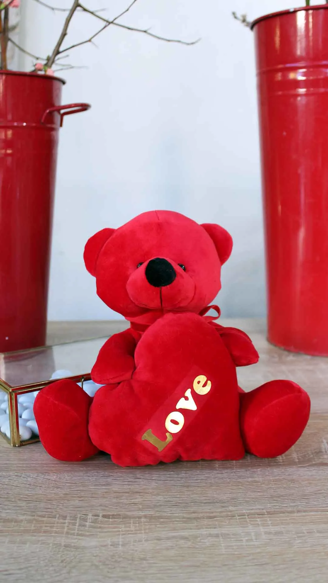 Κόκκινο βελούδινο αρκουδάκι 20εκ με καρδιά Love.