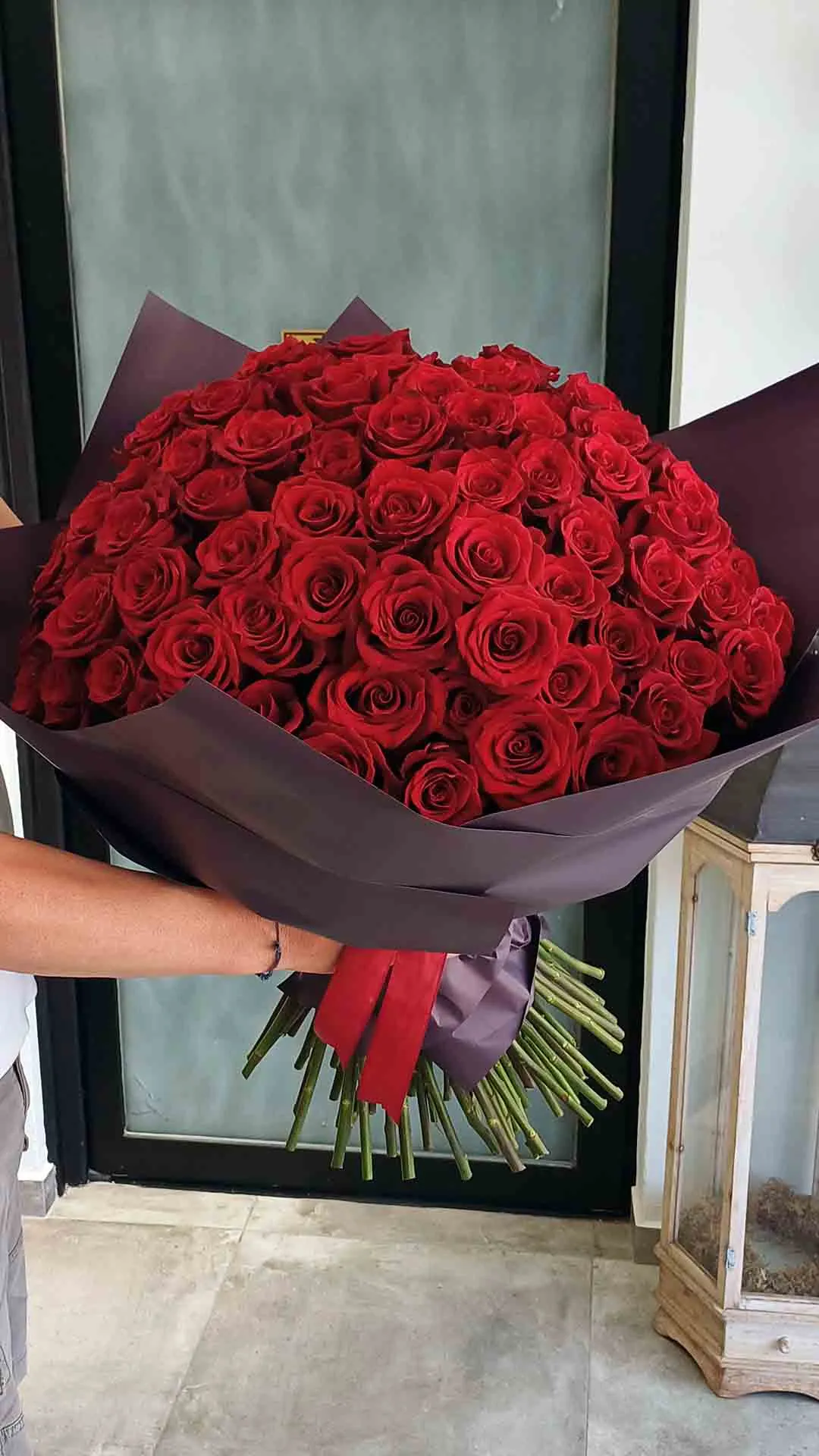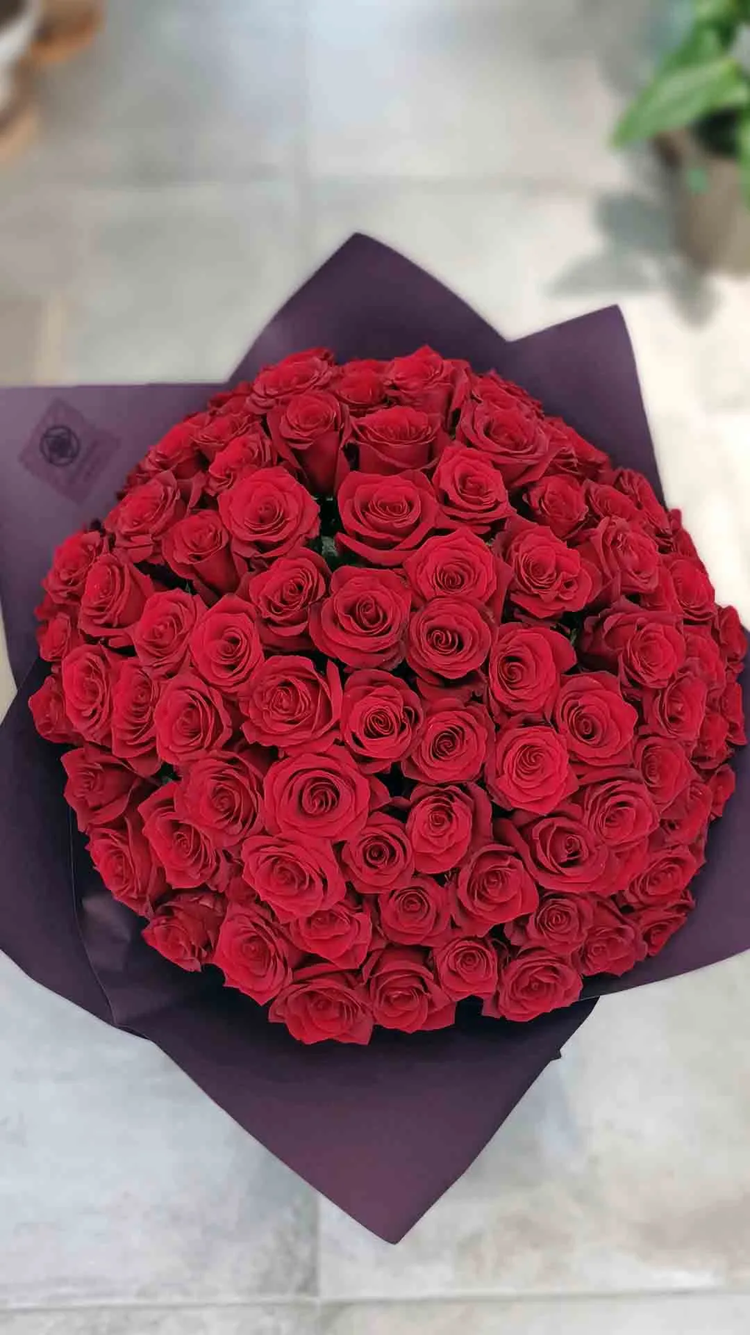 Μπουκέτο από 100 κόκκινα τριαντάφυλλα αρίστης ποιότητας.