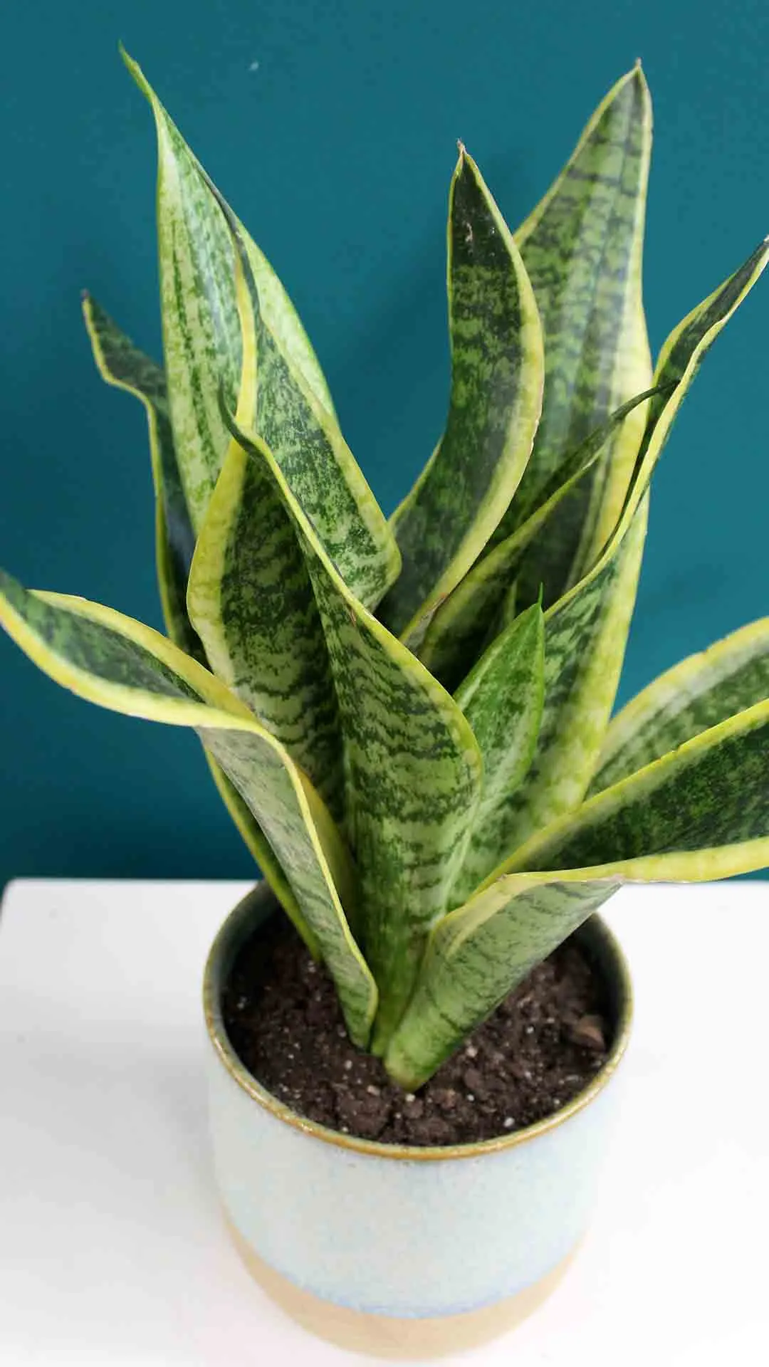 Σανσεβιέρια μικρή μεταφυτευμένη σε κεραμικό ποτ.